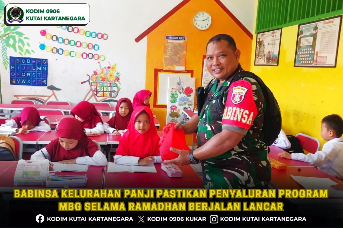 Kutai Kartanegara, lensapers–   Guna memastikan penyaluran Program Makan Bergizi Gratis (MBG) berjalan dengan tertib dan aman selama bulan suci Ramadhan, Babinsa Kelurahan Panji, Koramil 0906-01/Tenggarong, Serka Edi Sutrisno melaksanakan monitoring langsung proses pendistribusian MBG kepada para pelajar di wilayah Kecamatan Tenggarong, Kabupaten Kutai Kartanegara (Kukar). Kamis, 05/03/2026.