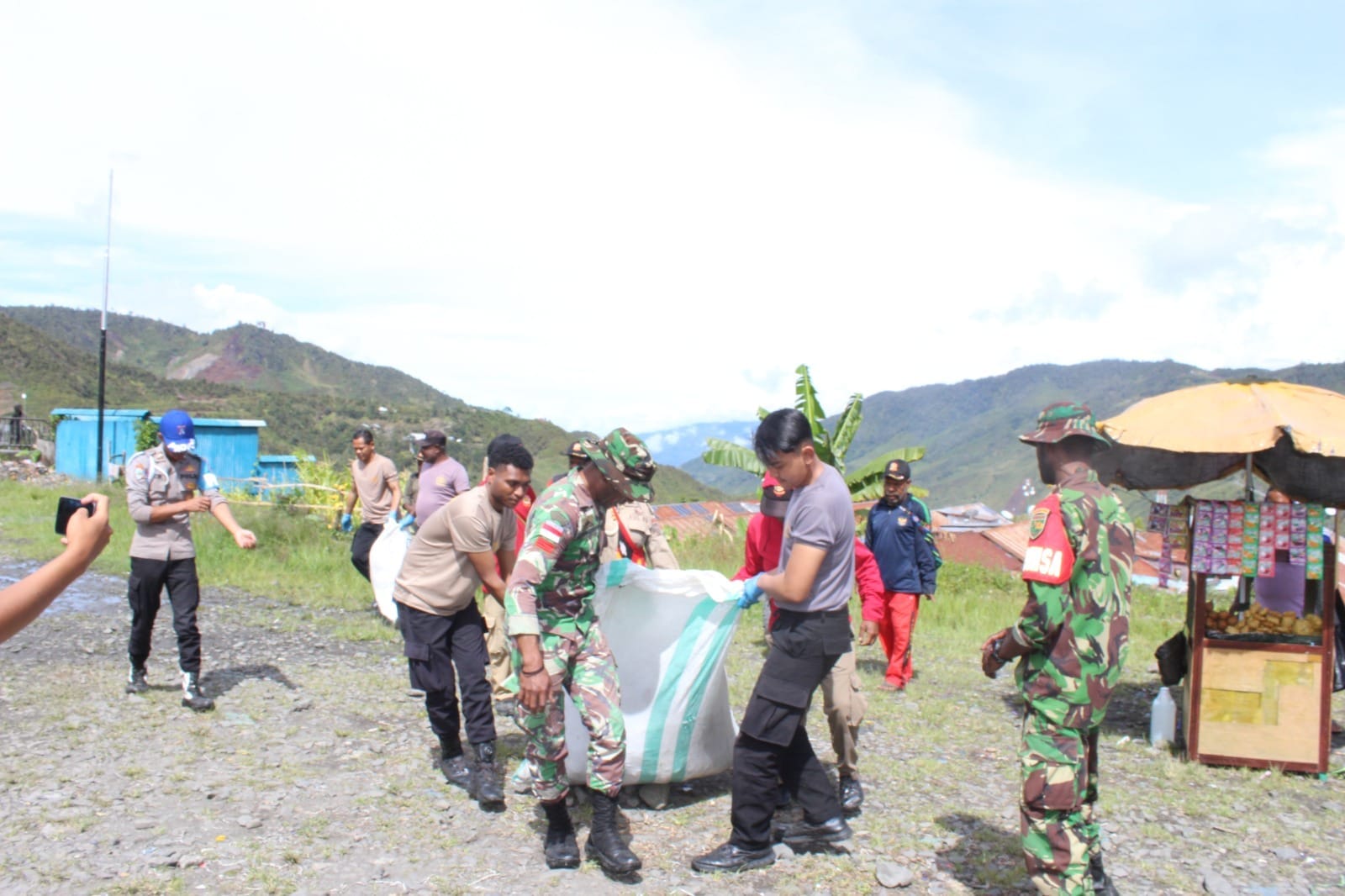 Mulia – Kodim 1714/Puncak Jaya, bersama jajaran Polri, ASN, dan masyarakat Puncak Jaya, melaksanakan karya bakti pembersihan sampah di Pasar Mama-Mama (Nagalomuni), Mulia Kota, pada hari Rabu, (11/2/2026). Sebanyak 170 personel gabungan TNI-Polri dan ASN dikerahkan dalam kegiatan ini.