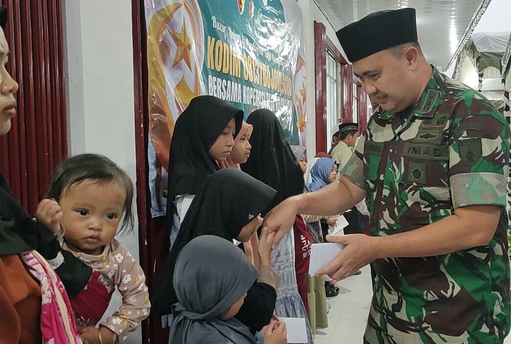 BOJONEGORO, – Kodim 0813 Bojonegoro menggelar kegiatan bazar murah, serta bakti sosial santunan kepada anak yatim dan dhuafa dihalaman Koperasi Desa/Kelurahan Merah Putih (KDKMP) Desa Pungpungan Kecamatan Kalitidu Kabupaten Bojonegoro, Senin (2/3/2026).