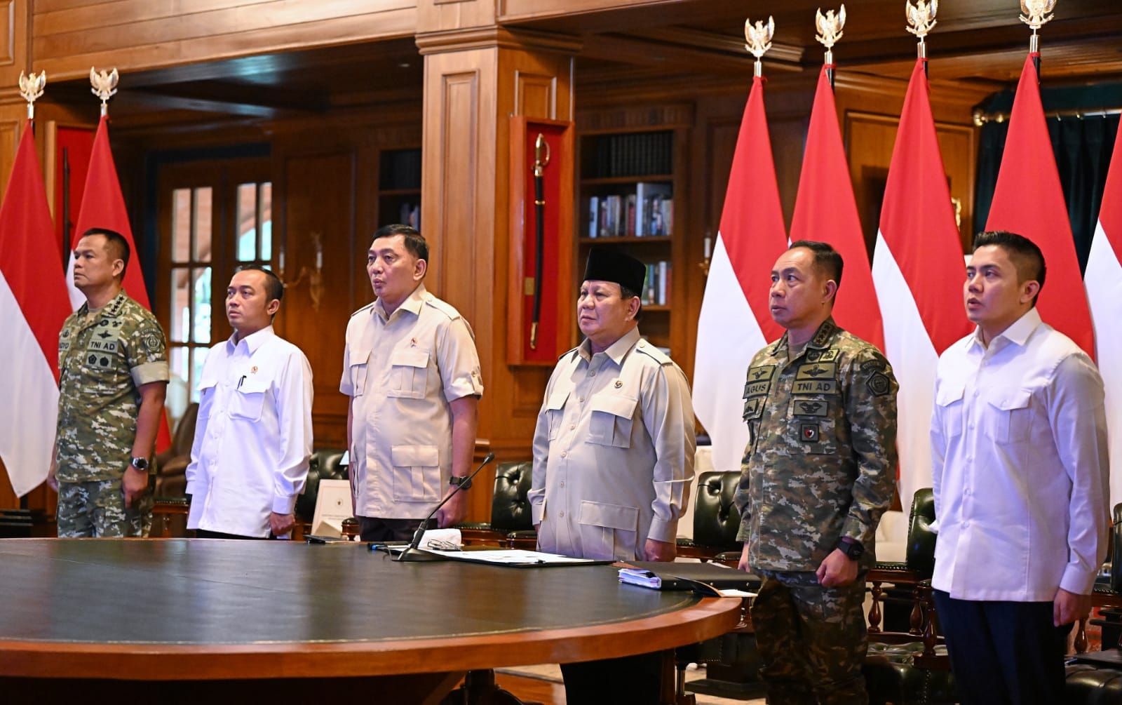Bogor – Panglima TNI Jenderal TNI Agus Subiyanto bersama Menteri Pertahanan RI Sjafrie Sjamsoeddin dan Wapang TNI Jenderal TNI Tandyo Budi R mendampingi Presiden RI Prabowo Subianto meresmikan 218 jembatan yang tersebar di berbagai wilayah Indonesia melalui video conference dari kediaman Presiden RI di Hambalang, Bogor, Senin (9/3/2026).