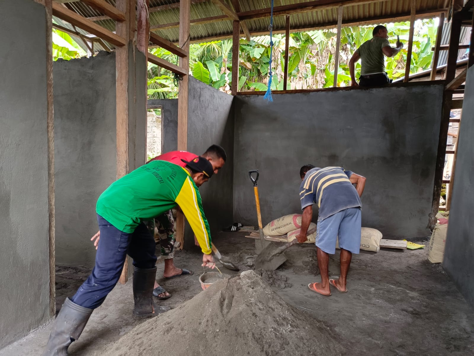 Personel TMMD Ke-127 Kodim 1514/Morotai Kerjakan Plester Dinding dan Pasang Triplek RTLH di Desa Mandiri