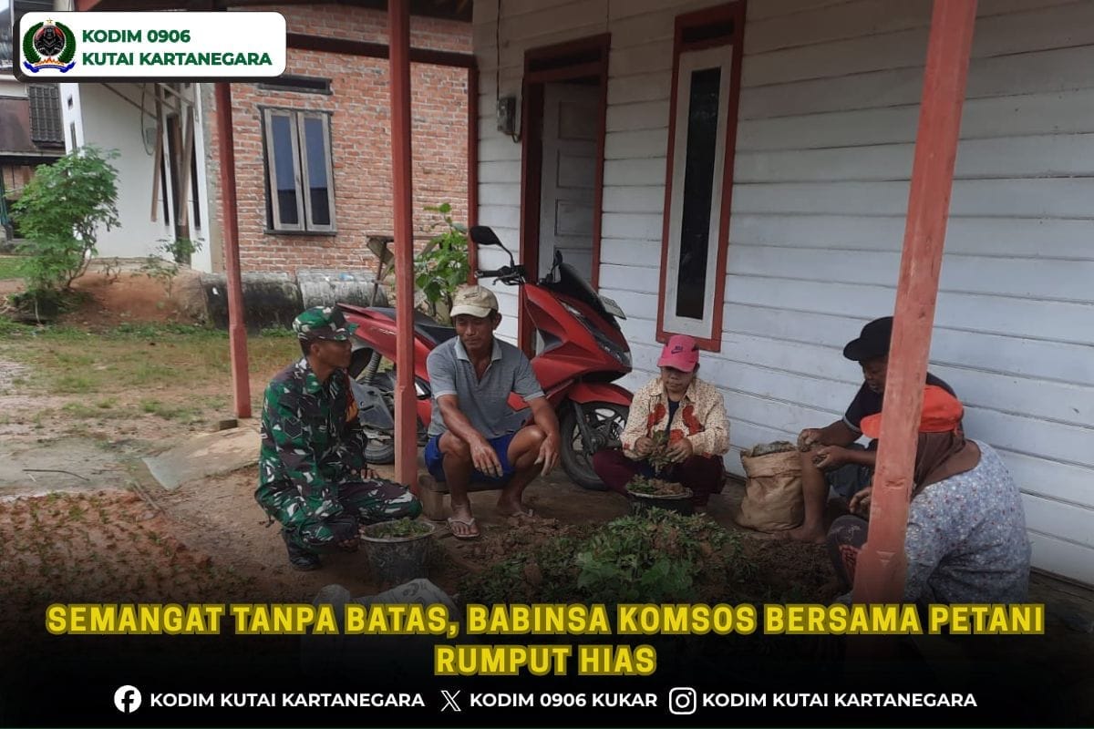 Kutai Kartanegara. lensapers.com- Untuk mempererat hubungan silaturahmi yang baik dengan masyarakat sekaligus mendukung perekonomian warga yang ada dibinaan, anggota Babinsa koramil 0906-14/Tenggarong Seberang Serma Sukirin melakukan melakukan komunikasi sosial (komsos) bersama petani rumput hias yang berada di rt 4 blok A Dusun Rejo Makmur Desa Karang Tunggal kecamatan Tenggarong Seberang, Kamis 26/2/26.