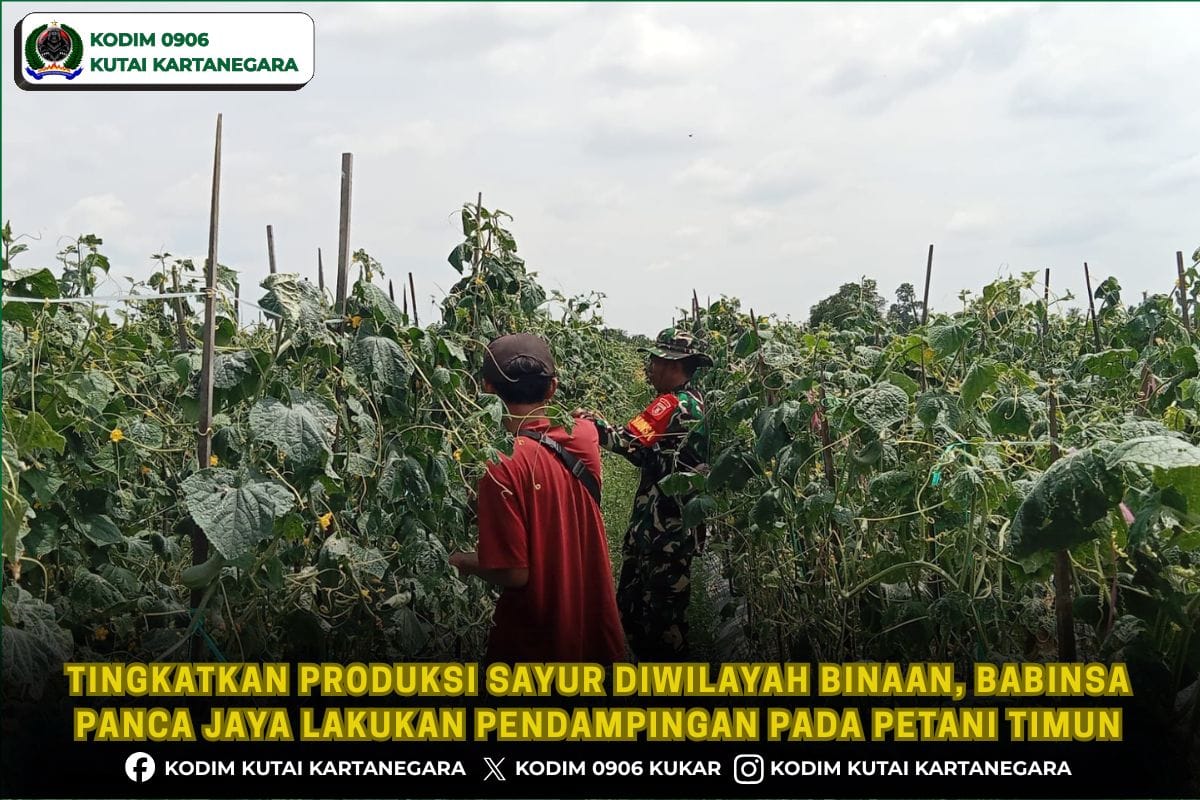 Kutai Kartanegara. lensapers.com- Anggota Babinsa Koramil 0906-08/Muara Kaman Sertu Sahroji lakukan pendampingan pada petani timun yang tergabung dalam kelompok tani Berkah jaya berada di desa panca Jaya Kecamatan Muara Kaman, 10/3/26.