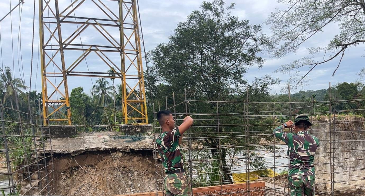 TNI AD Bangun Jembatan Gantung di Bonjol Pasaman, Percepat Pemulihan Akses Warga Pascabencana